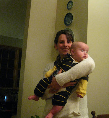 We had a busy week last week with visits from friends and family. On Friday Jason and Julie, our old friends from Vermont Law School, came over for dinner with their 2 boys Colin (2.5) and Bryce (4 mos). Aiden and Colin bonded over trains and tools, while we all had a nice meal and reminisced about South Royalton, VT. Seems the most vivid memories include breakfast at Eaton's SugarHouse, wednesday wings and #9 at the Crossroads, and feet and feet and feet of snow. But then again, I didn't actually do the law part, so I didn't even have to block that out. Jay and Julie and the boys then headed over to VLS for reunion weekend, while Andy and I were each stuck working parts of Saturday.