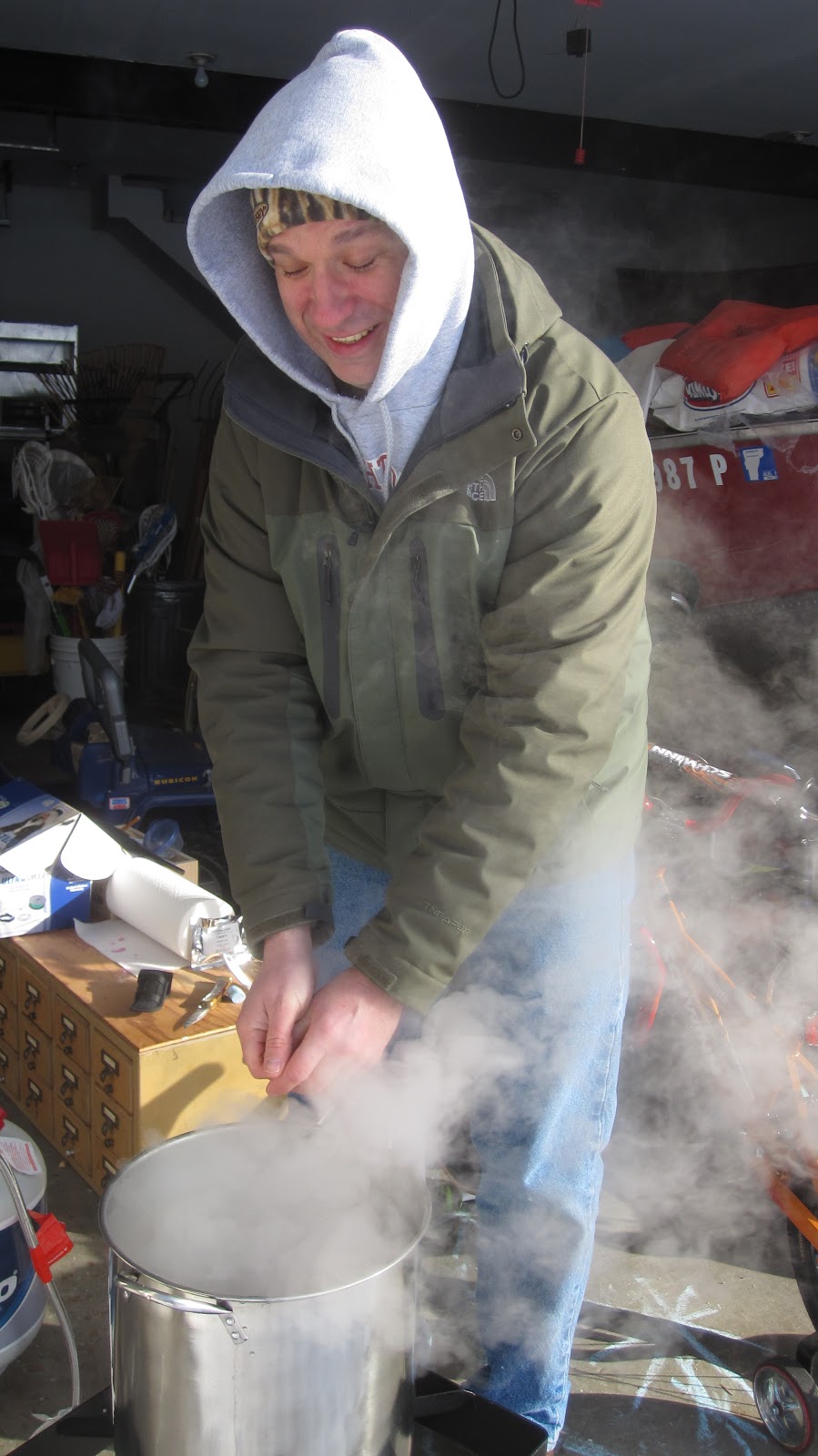 Andy and I had a rare day off while the kids' school was open last week and we took the opportunity to clean out the garage attic and brew a new beer, a brown ale called Caribou Slobber. It doesn't sound very appetizing but if it's potable it will at least make for interesting conversation. It was about 3 degrees out while we were cleaning and sorting and brewing (all outside) so we huddled over the brew occasionally to keep our fingers working. When we picked the kids up that afternoon I know we smelled strongly of hops and malt, but no one said anything.